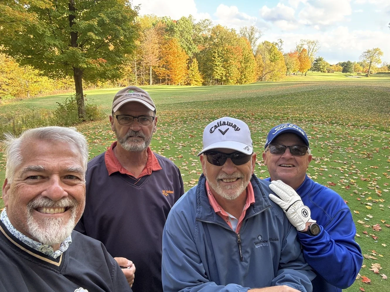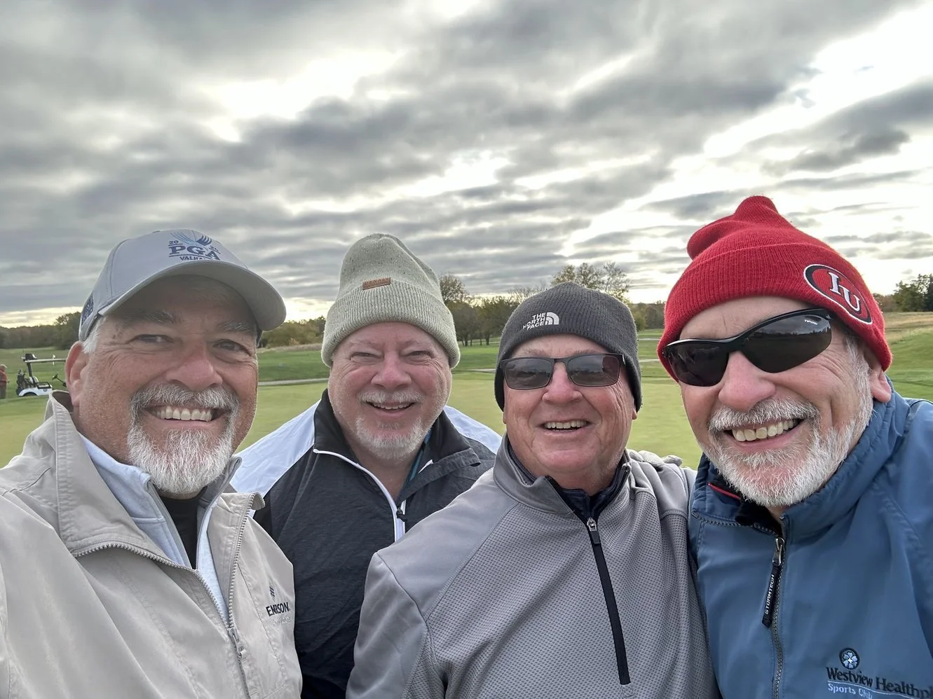 For the last 4 or 5 months I have been telling Dave Emery that he needs to come up to Indy so we can do some fishing and play some golf. It’s October. We gotta do it now. They have started lowering the water at my lake house and I can’t get my boat out. No fishing, but we can still play golf. We played a couple of rounds. Once at The Fort and another at Twin Bridges. Mark and his brother-in-law Rick joined us for this adventure. The Fort started off nice, but the weather swooped in on us on #9. Rain and a nice steady 30mph wind. We made it to the clubhouse, waited about 45 minutes and started back on #10. Then waited under the trees at #11 for about 20 minutes and then finished up the round. We didn’t play all that badly if you scored it as “strokes per hour”. Scott took Rick’s place the next day. Twin Bridges was just a horrible cold nasty day with greens as slick as snot. I sure am glad I was with that group of guys. That was the only part of the day that made it somewhat fun. Misery enjoys company! On the bright side, Dave brought up some fish, and we ate really well that evening. Dave, lets not wait until late October next year.
