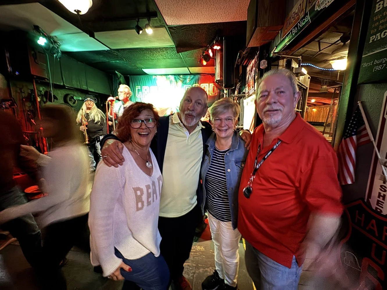Luckily, the Arthur’s of Sarasota had such a room. Jenny and Alan were the perfect hosts! Alan and I went to a car show early Saturday morning, but other than that, everything else we did just kind of happened. A typical day was wandering around thrift shops in the afternoon, dinner at Walt’s followed by an evening watching an old movie on the couch. We did spend one evening listening to a great band as we ate hamburgers and drank beer at our new favorite place. Wish I could remember the name of that place. It was time to cross the state of Florida, in search of another guest room as we started the journey homeward.