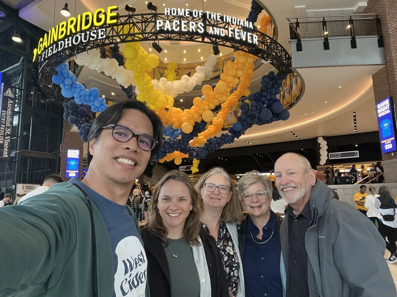 This was a fun month. My niece Megan and her husband Alvin were visiting from Singapore. This doesn’t happen very often, so it was important that we see them. The Pacers were just starting their first series in the playoffs. This doesn’t happen very often, so it was important that we see them. Alvin is a big NBA fan, so a plan was devised. Those two, along with my niece Dawn, drove up from Cincinnati. We had a nice meal at Harry & Izzy’s and then wandered over to the Fieldhouse. It was a great game that the Pacers won, which was the start of a long road that ended in game seven of the finals, just one torn right Achilles tendon away from a championship. Jane & I enjoyed the game but really enjoyed the family time.