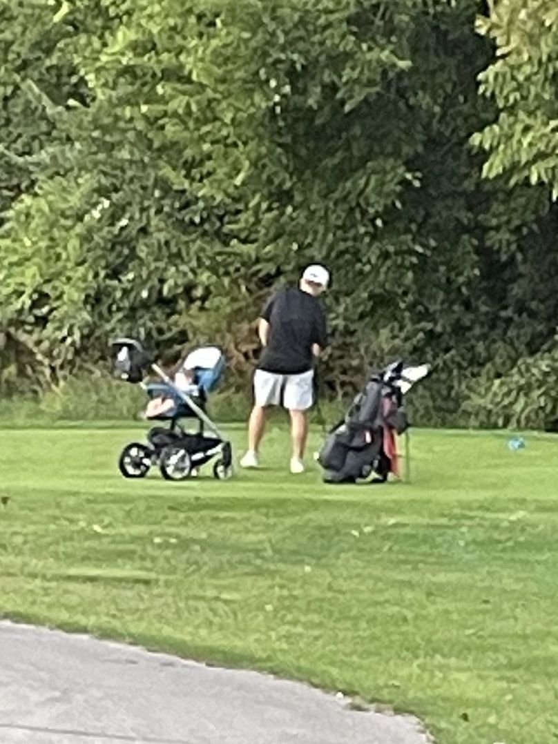 Another big month. All sorts of fun things. First off, I need to share this photo from our Wednesday evening golf outing. I don’t know who this guy is, but he teed off before us that evening. By himself, just going to get in a quick nine. Look at that photo. I didn’t know that Calloway even made a baby stroller! This guy carried his clubs and pushed the baby stroller. Like I said, I don’t know this guy, but I can guarantee his wife knows nothing about this! Or, this is why you don’t ask your brother-in-law to babysit.