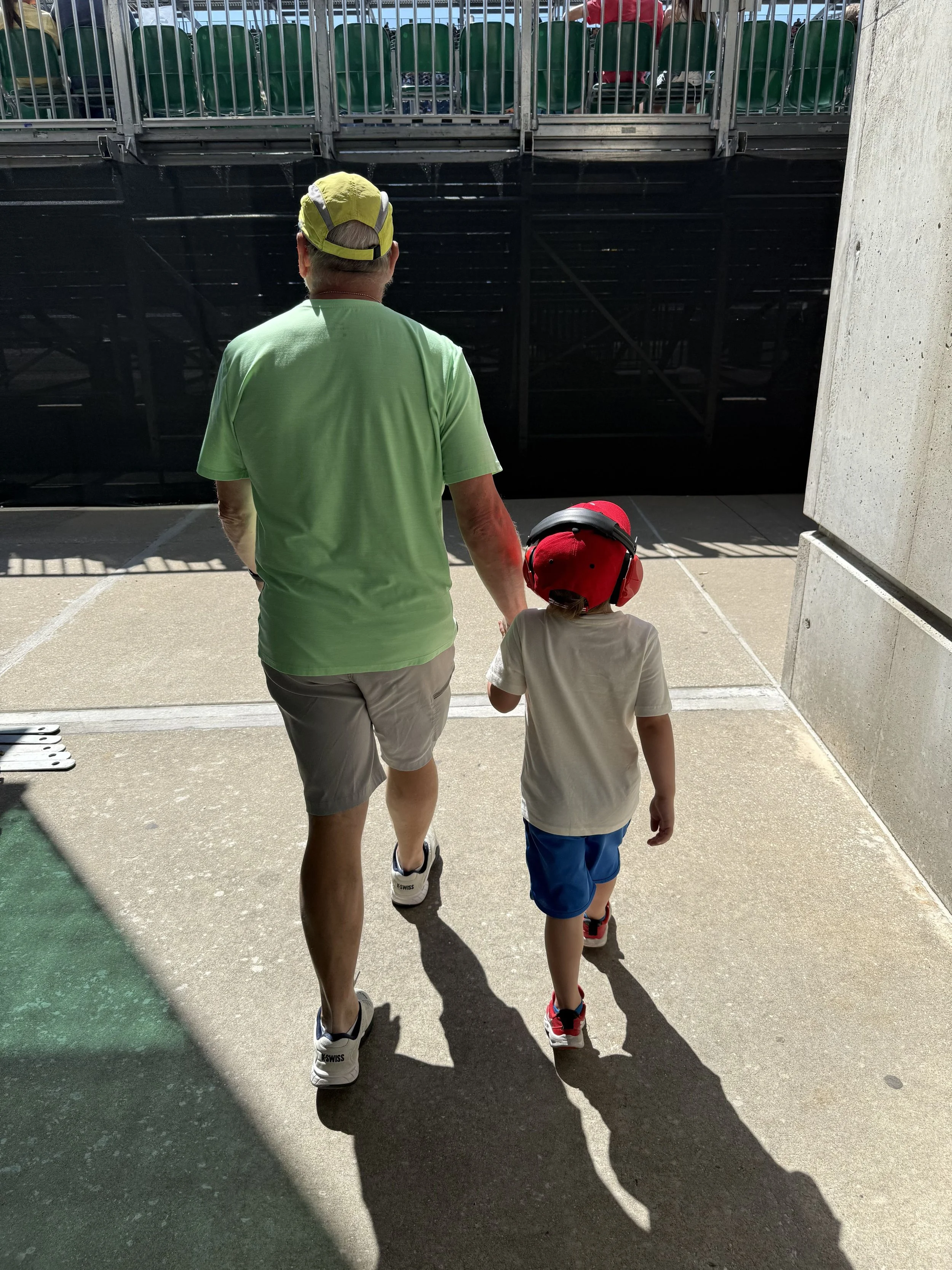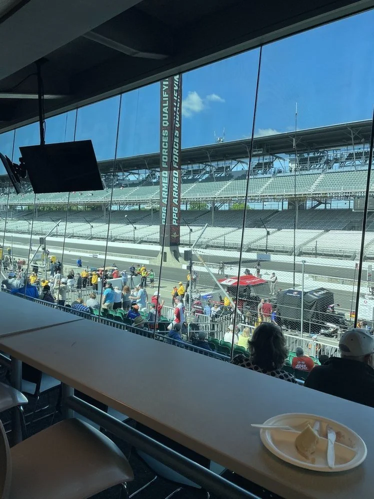 We had the opportunity to spend Qualification Saturday at the track in the Cooper suite. It was a great day with friends, but the next day was really special. Evan got to take his first ever visit to IMS to see and hear the cars. He seemed to enjoy it, though not really sure he understood it. But I trust that someday, he will skip school to go to the track, just like his mom.