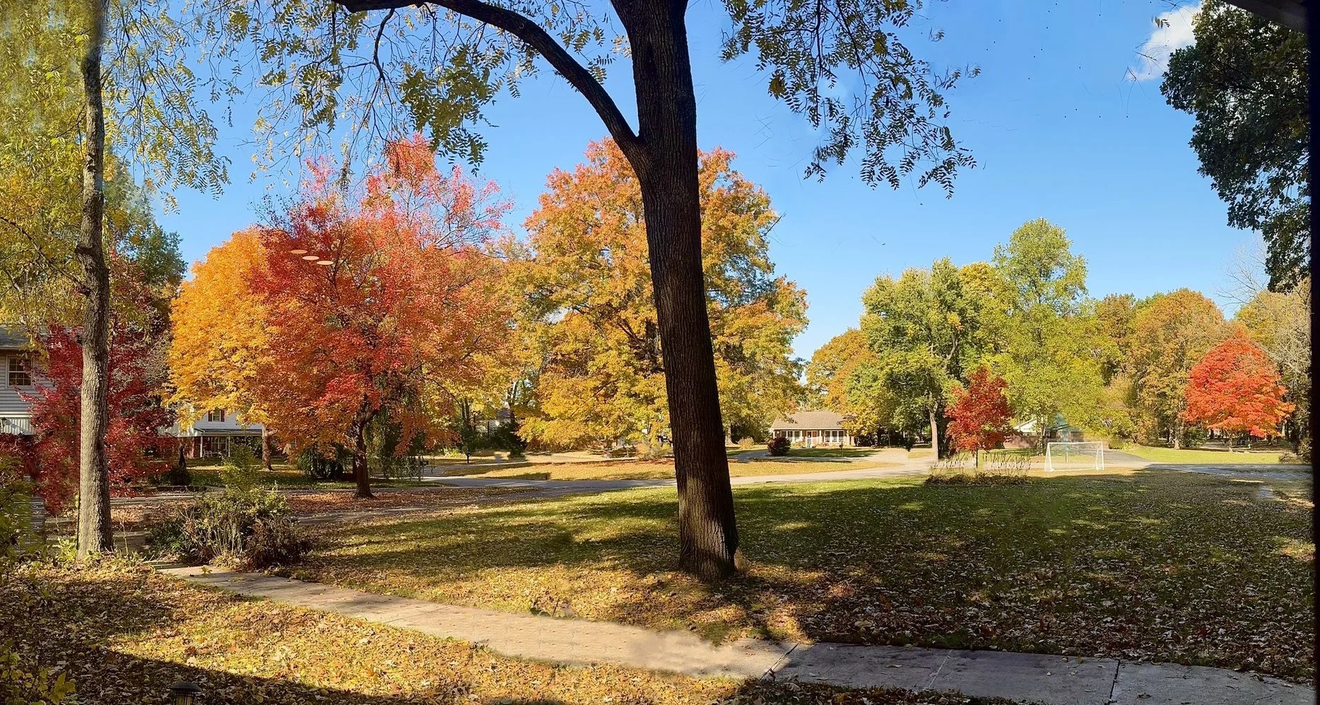 The month started on a Saturday. It was a beautiful fall day, and the leaves were finally starting to turn. Here is a photo from our front steps.