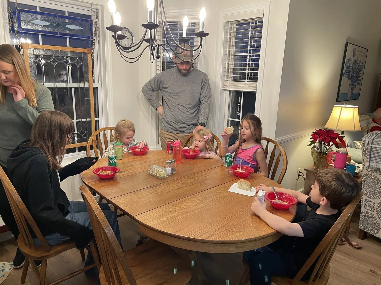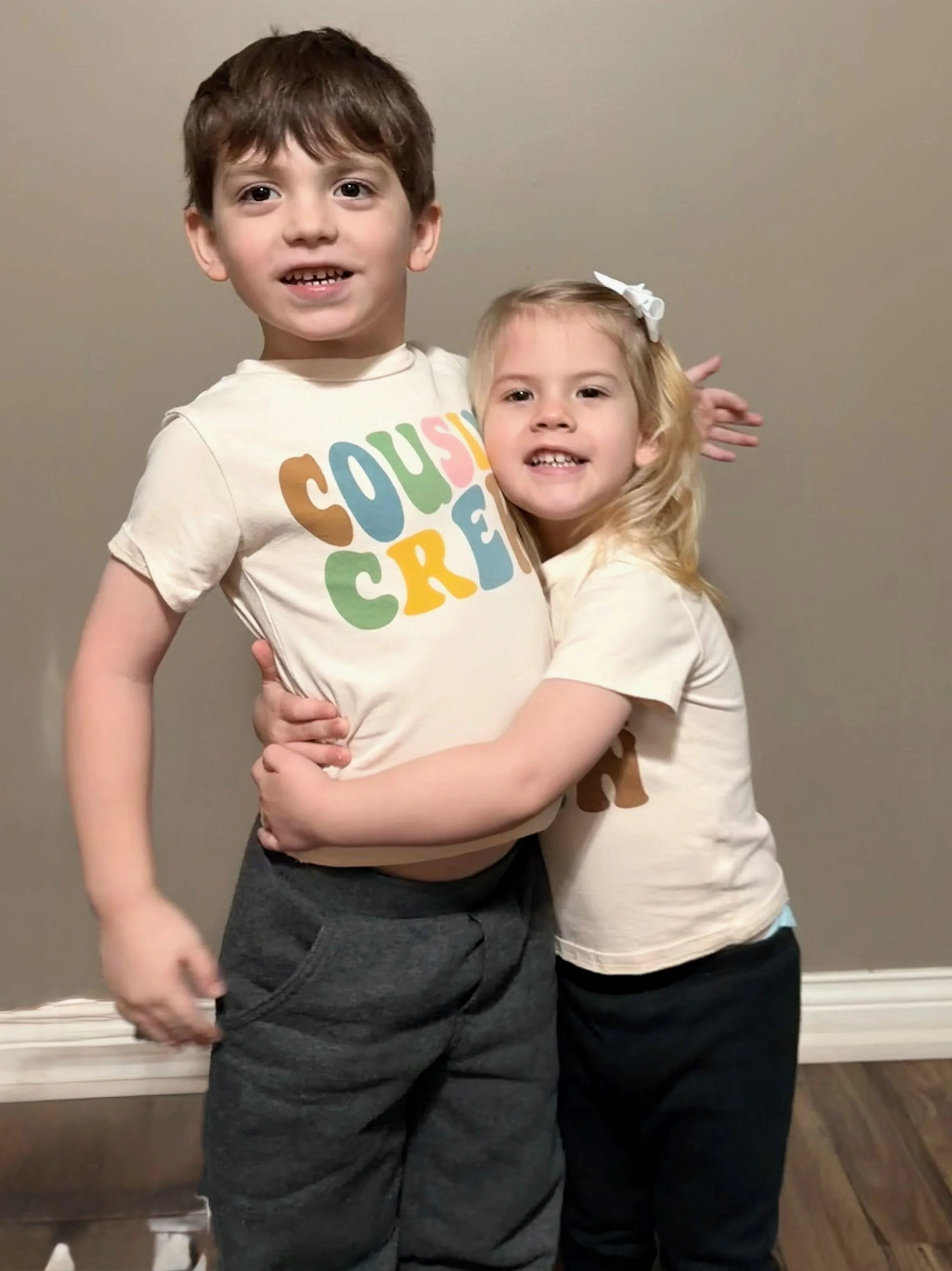 The exciting part of the month was when the family met at Emily’s one day for no particular reason. We are just hanging around when Evan & Addie come into the room wearing matching T-shirts. Not unusual, except there were no Disney logos on these shirts. These shirts said “Cousin Crew” across the front. It didn’t mean much to me since they have a bunch of Wallace cousins. Then I felt the glare. Sarabeth is staring at Jane and I and then back at the shirts. And back at us. The “Cousin” in question was not a Wallace, but a Biddle! This was Sarabeth’s way of announcing that she and Zach were going to have a baby! Quickly thereafter we are all jumping up and down screaming and laughing and crying. It was at that point we realized we were scaring Evan and Addie. We explained everything to them, and they seemed excited about it for about 3 minutes. So, there you have it. The reason February was exciting. The due date is September 12th, so it will be fun watching Sarabeth take up more space in the photos as this letter progresses.