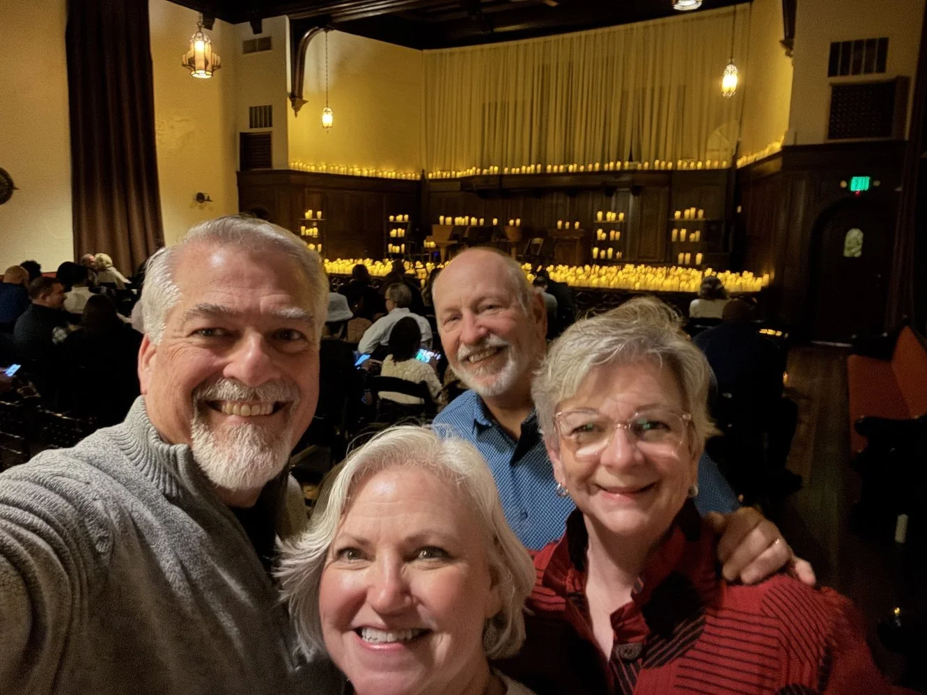 Luckily, she woke up in time to go to a candlelight concert we attended with Mark & Karen Becker downtown. A string quartet entertained us with the music of Whitney Houston as we sat in this old church sanctuary surrounded by about 1000 flickering candles! It was romantic, relaxing, and a testament to what can be done with led lights